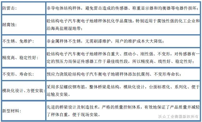 砼結構汽車衡電子地磅俗稱“水泥秤”\“電子地磅”,以混凝土結構臺面取代傳統的鋼結構臺面,防雷擊、耐腐蝕、免維護、使用壽命長,性能穩定,從根本上解決了鋼結構汽車衡的一些無法解決的問題,已在國內外得到廣泛的應用。從目前世界橋梁技術的發展可以預見,以前我們常見的鋼結構橋梁將逐步被砼結構橋梁所取代,高鐵則全部采用砼結構的橋梁和路基,這些都足以證明砼結構的穩定性和可靠性。 廣泛應用于工礦企業、港口碼頭、礦山、冷庫、生鮮交易市場、公正計量站等,特別適用于有化學品腐蝕的化工企業,沿海高鹽潮濕地帶等場所。